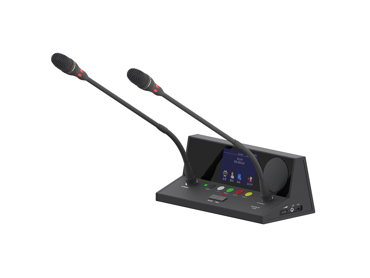1.红绿双色雾面指示灯设计,指示发言状态。当红色灯环亮时,表示正在发言,当绿色灯环亮时,表示申请等待发言。