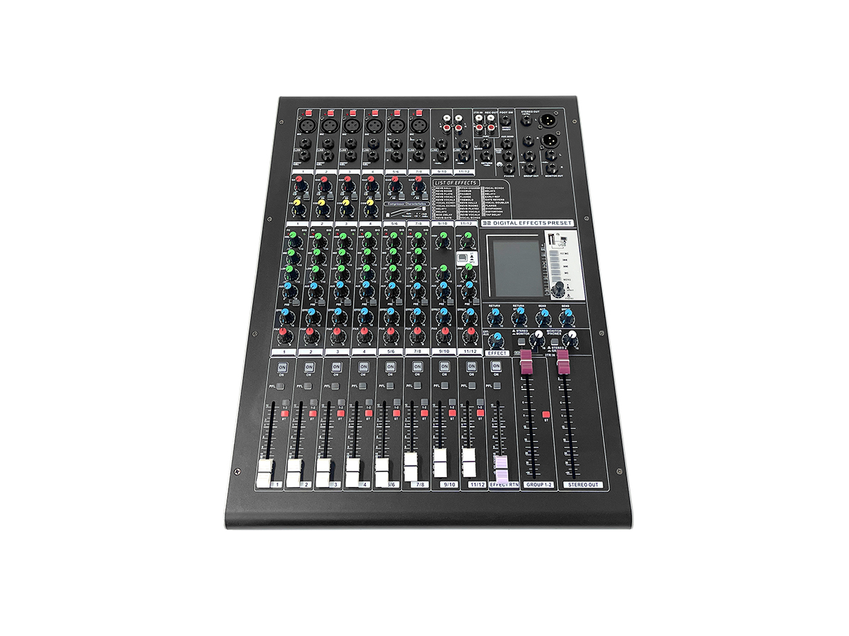 1.这是一款12路2编组模拟调音台,独特的外观设计;